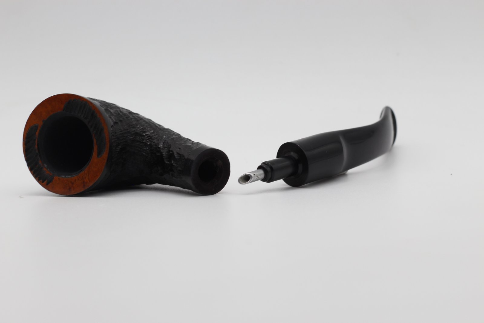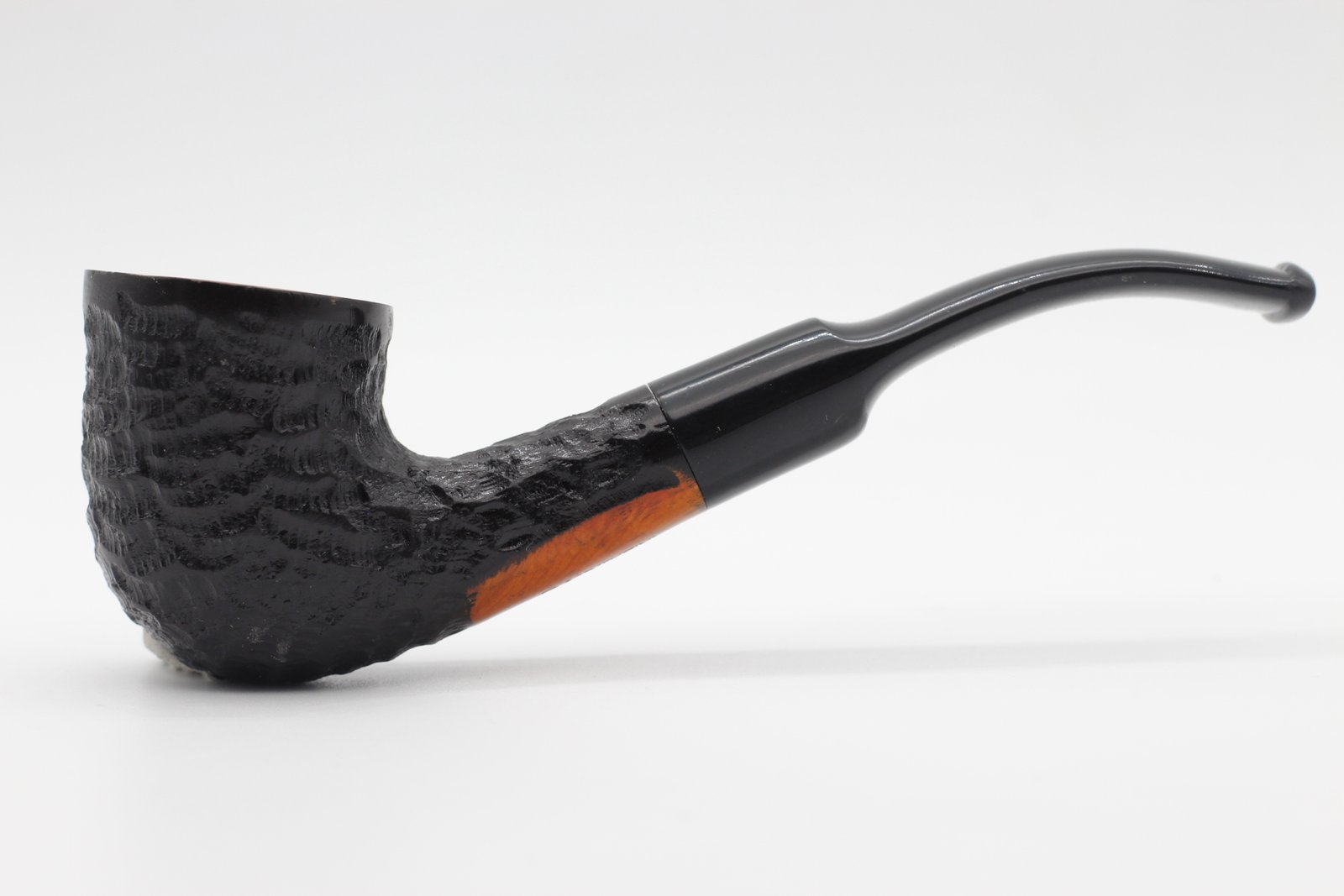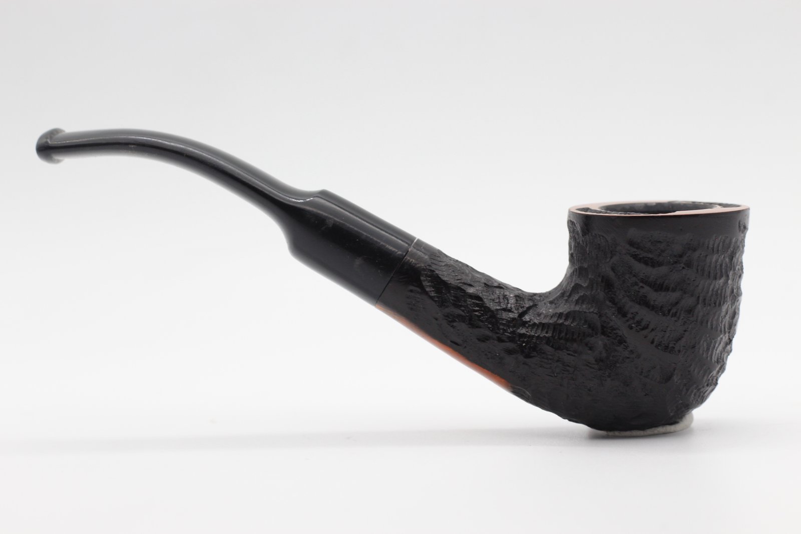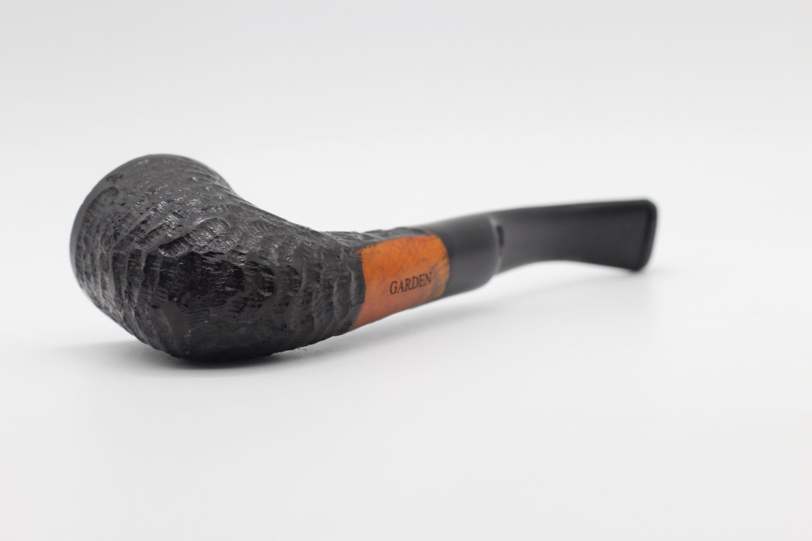 Lorenzo pipa Garden Sand Bent Dublin bruyere gyökérből készült kézzel rusztikolt-sötétbarna pipafej, filter nélküli, enyhén hajlított szárral, fekete akril szopókával.