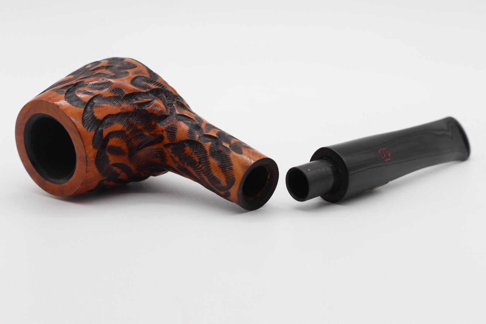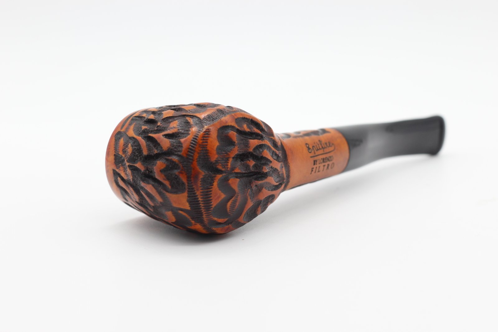 A Lorenzo pipa Filtro Rustic pipa bruyere gyökérből készült barna színű, kézzel rusztikolt pipafejjel, egyenes szárral, fekete 9 mm-es filteres, fekete akril szopókával. Közepes kazánméretű.