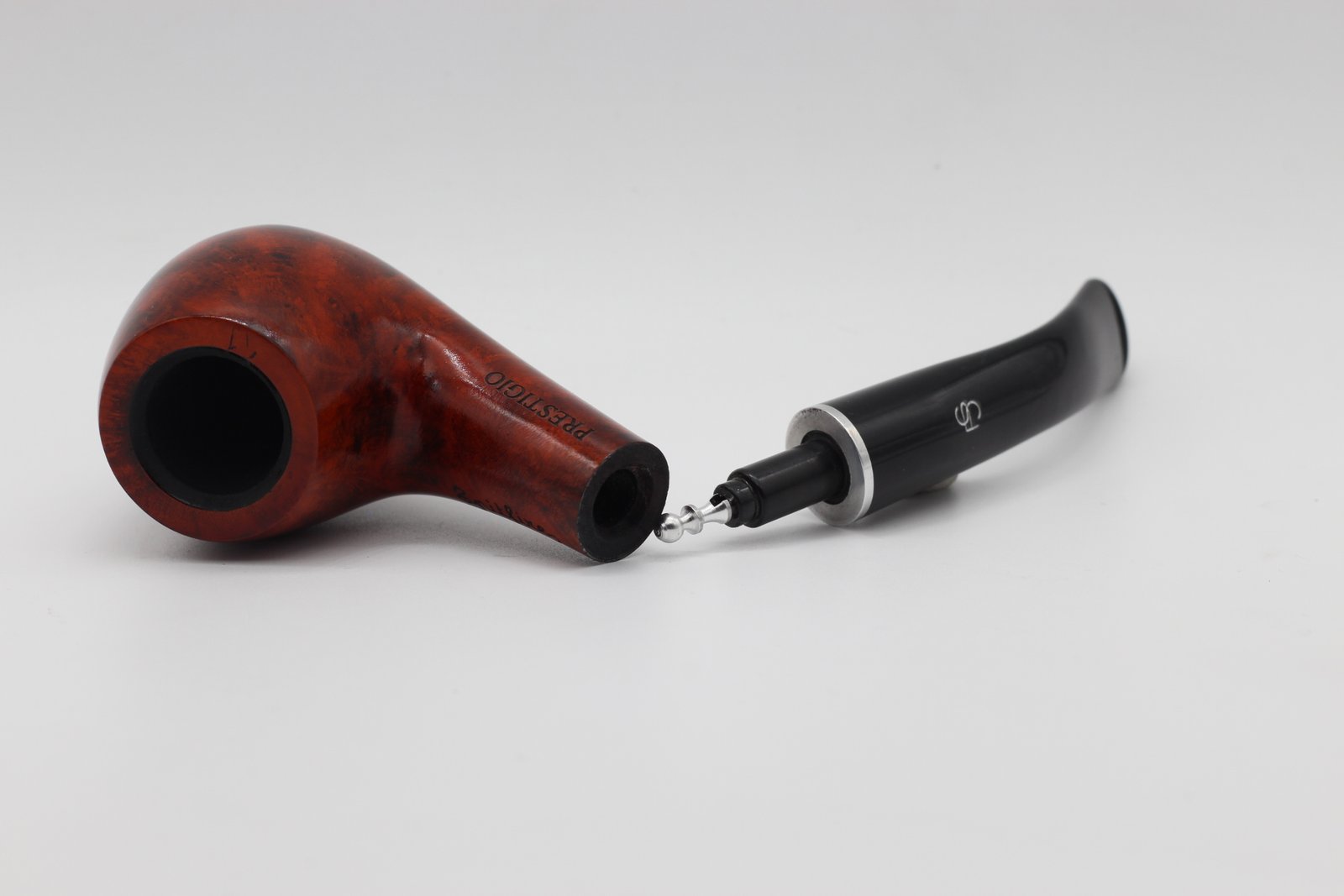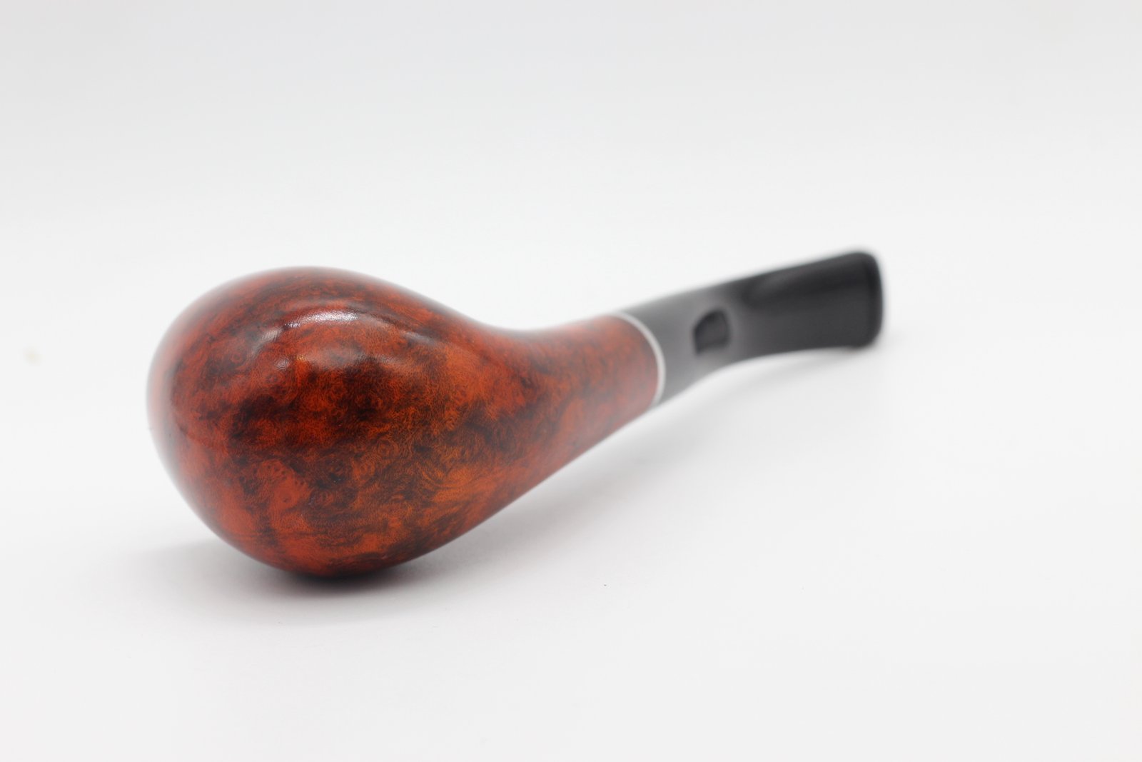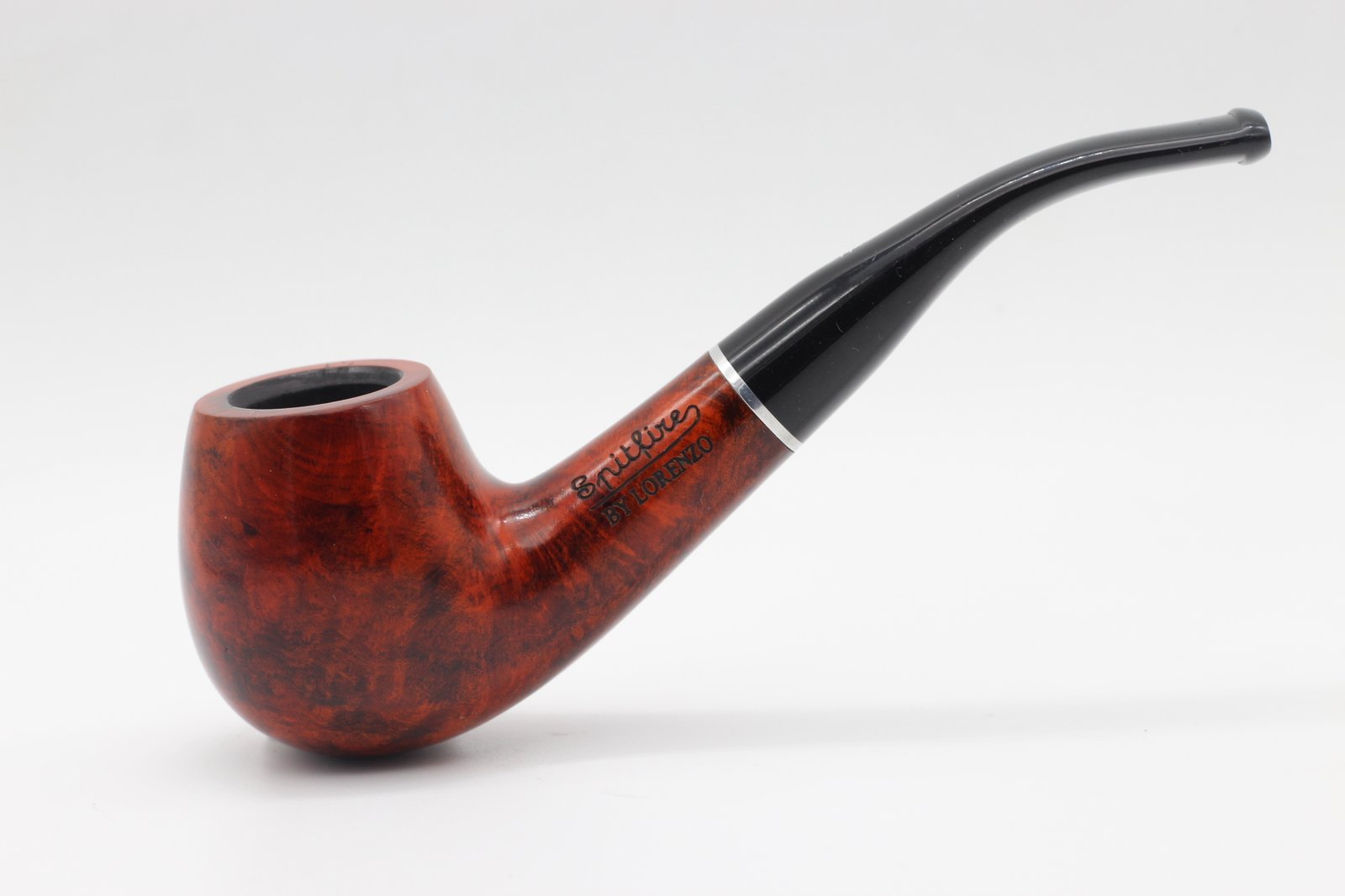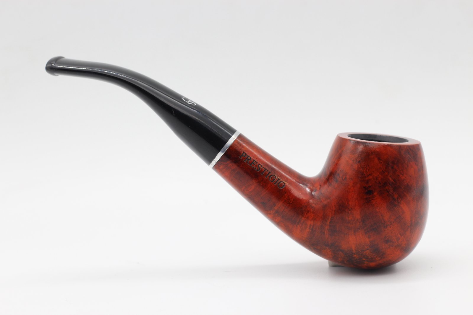 Lorenzo Prestigio 220 Brown Polish pipa bruyere gyökérből készült polírozott barna színű pipafej, hajlított, filter nélküli, fekete szopókával és közepes kazánmérettel. Szárát keskeny, ezüst színű gyűrű díszíti.