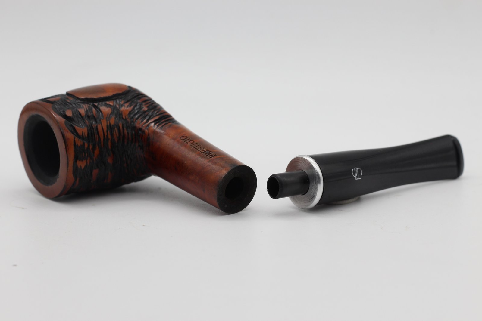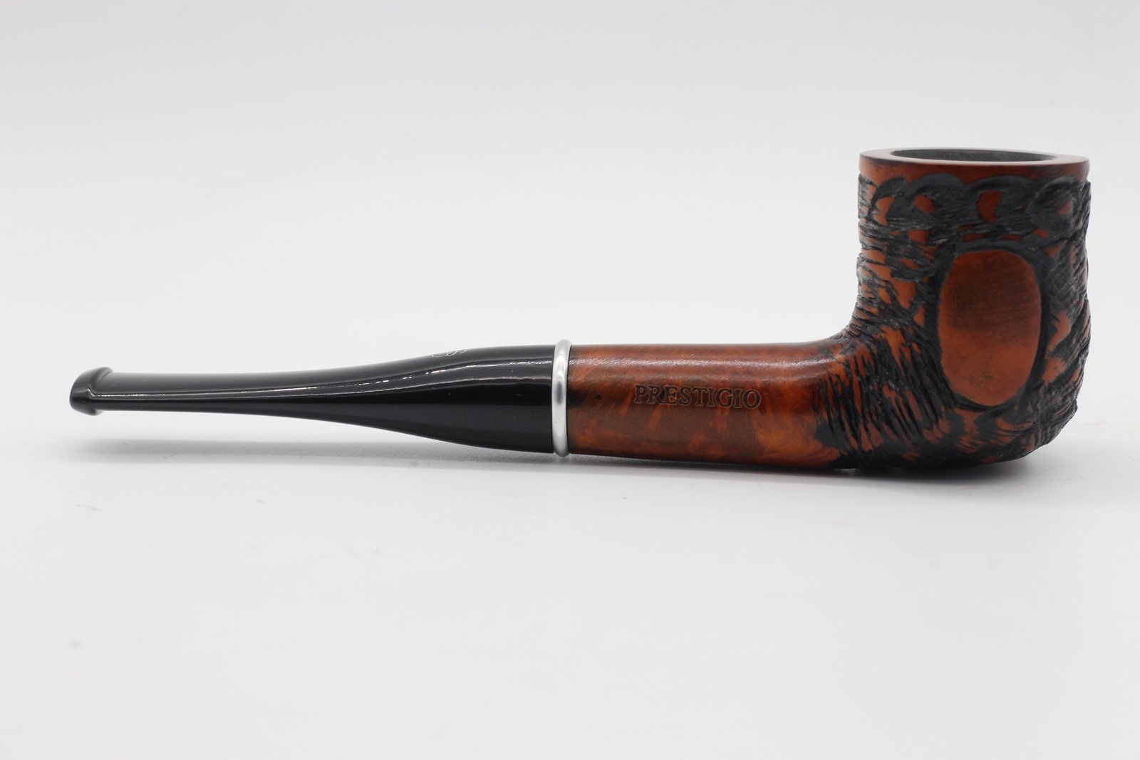 A Lorenzo Prestigio 430R Rustic pipa bruyere gyökérből készült részben rusztikolt barna színű pipafej, fekete szopókával, 6 mm-es filterrel.