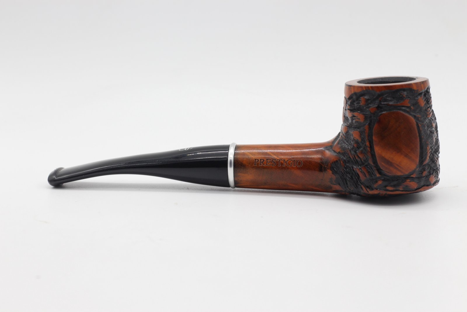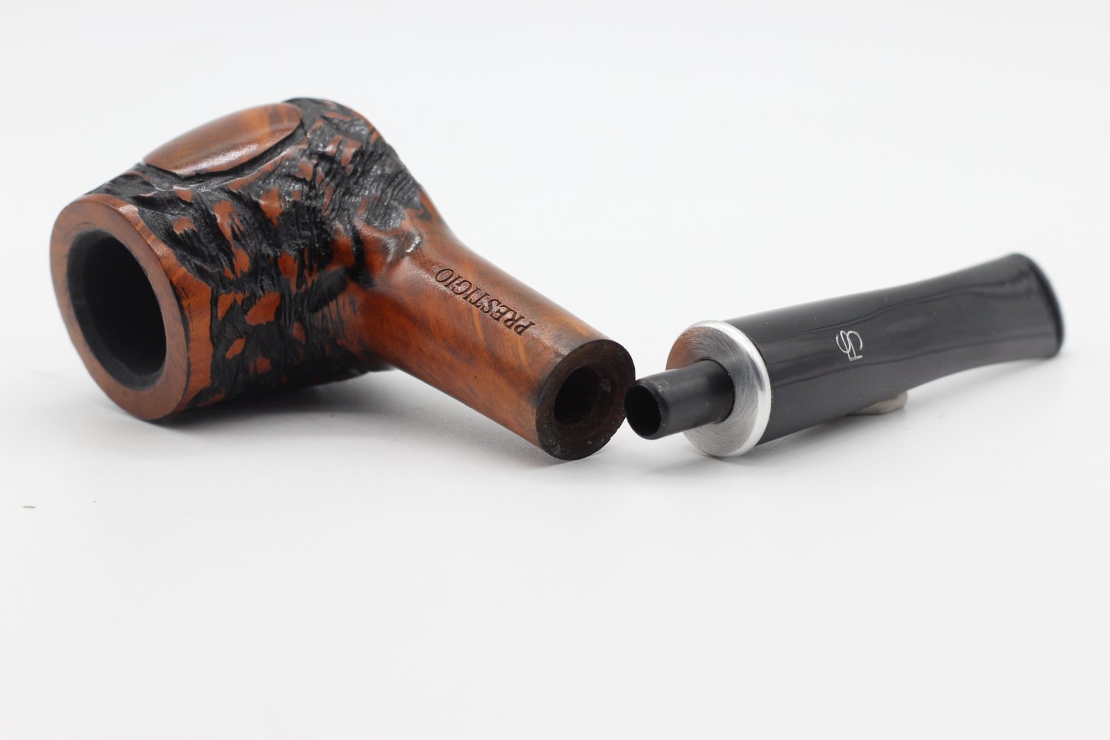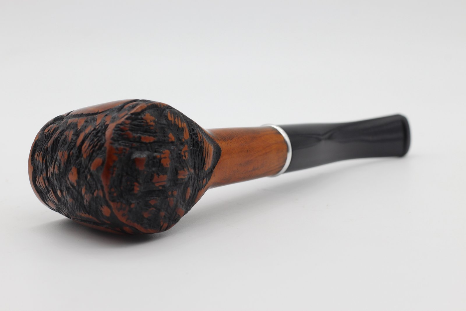 A Lorenzo Prestigio 480R Rustic pipa bruyere gyökérből készült részben rusztikolt barna színű pipafej, fekete szopókával, 6 mm-es filterrel.