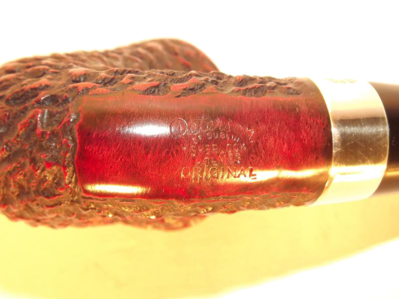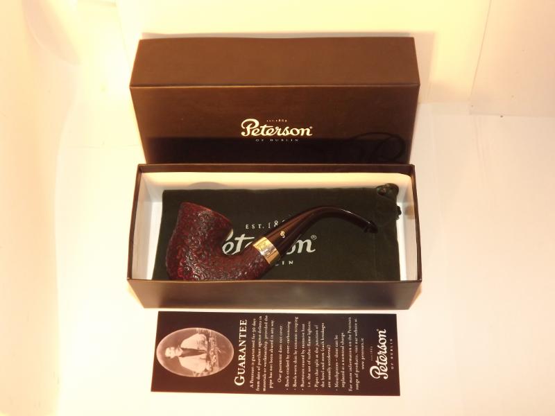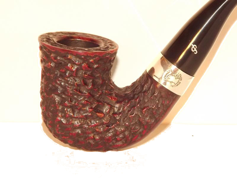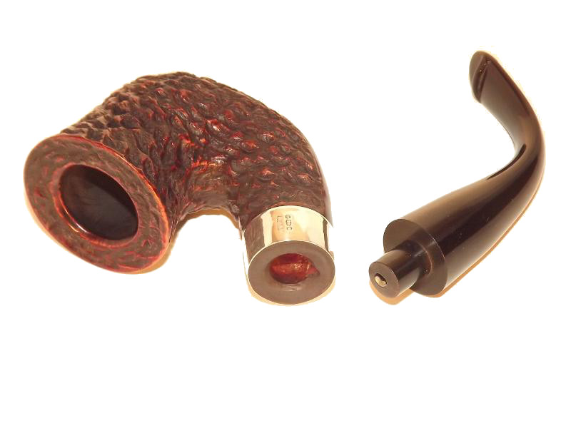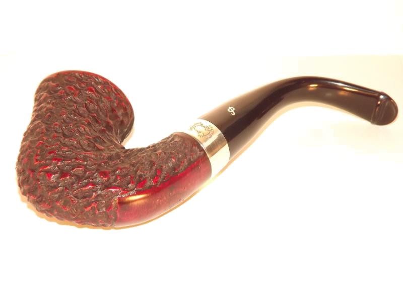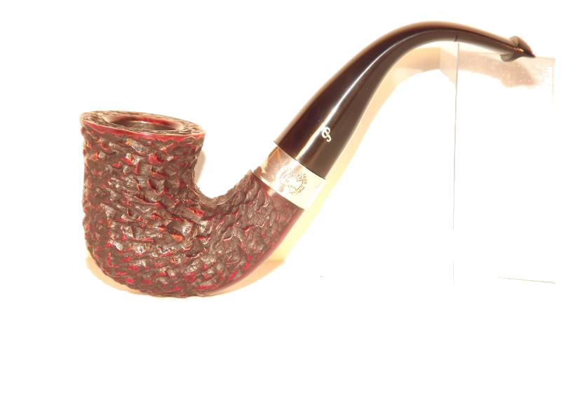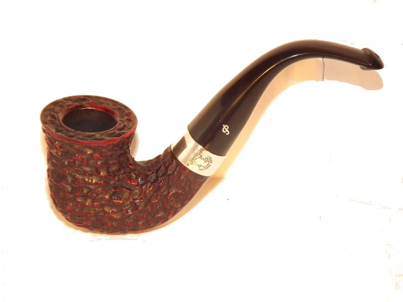 A Peterson Sherlock Holmes Original Rustic bruyereből készült, rusztikolt pipafejjel, hajlított szárral, melyet egy szép Sterling-ezüst gyűrű díszít. Filter nélküli, fekete P-lip szopókával.