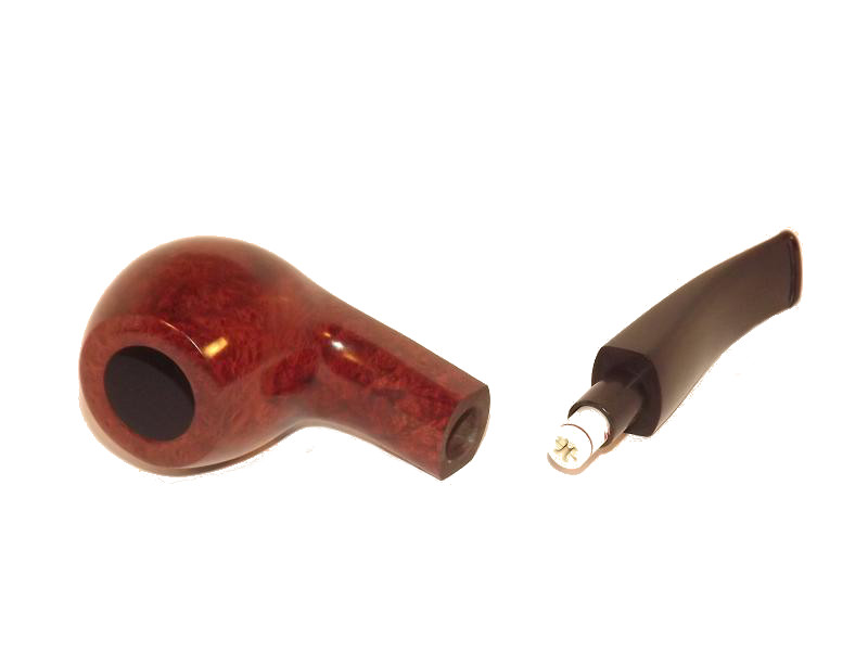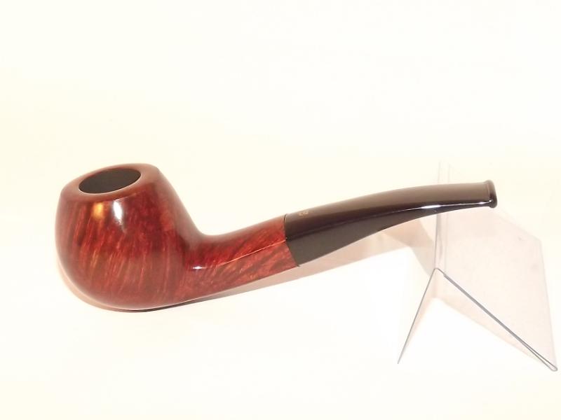 Ez a Stanwell Danske Club pipa bruyerből készült vörösesbarna polírozott pipafejjel, 9mm-es filterrel, fekete akril szopókával és enyhén hajlított, négyszögletű szárral.