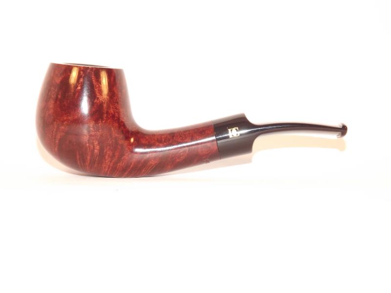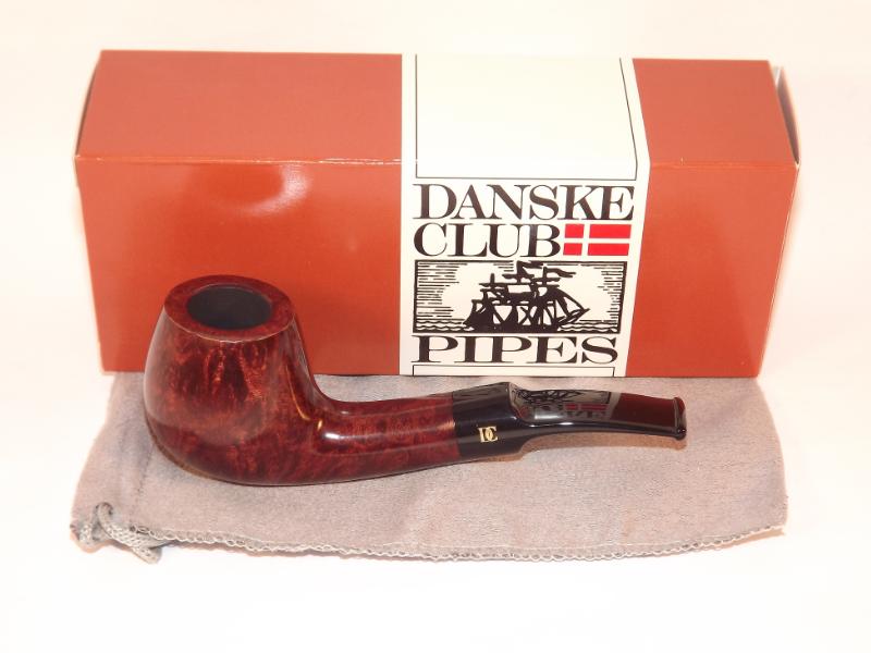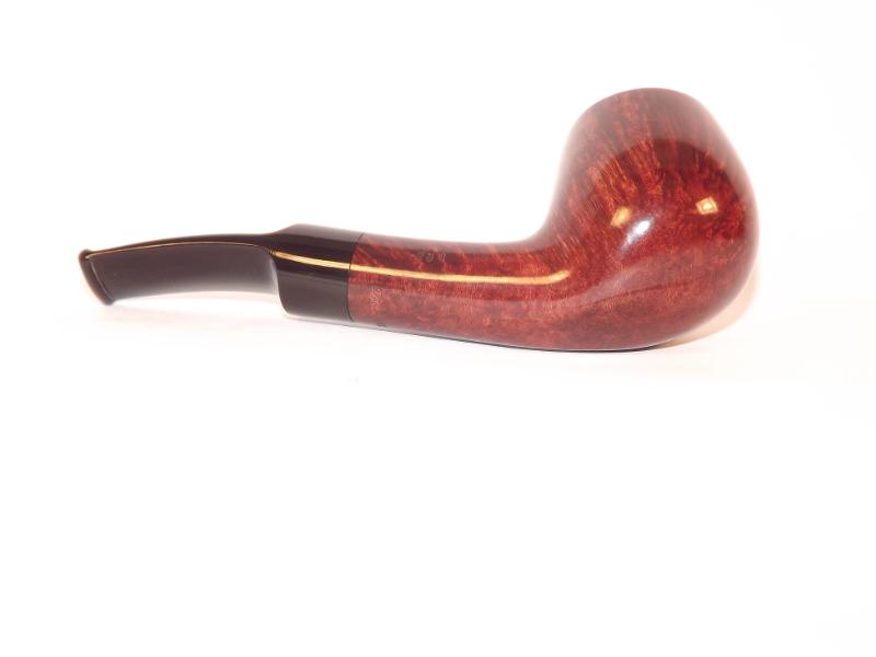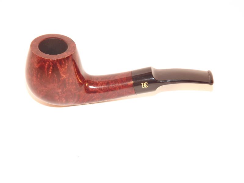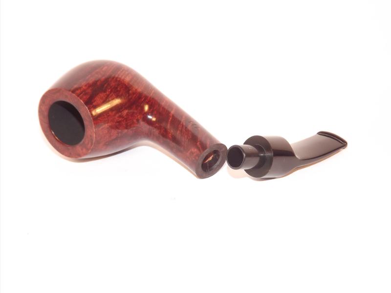 Ez a Stanwell Danske Club pipa bruyerből készült barna polírozott pipafejjel, 9mm-es filterrel, fekete, nyerges akril szopókával és enyhén hajlított szárral.