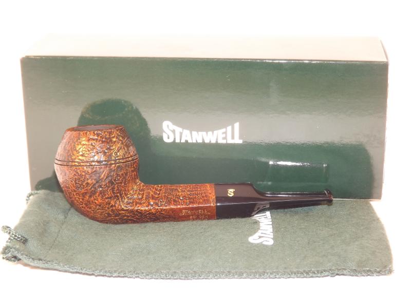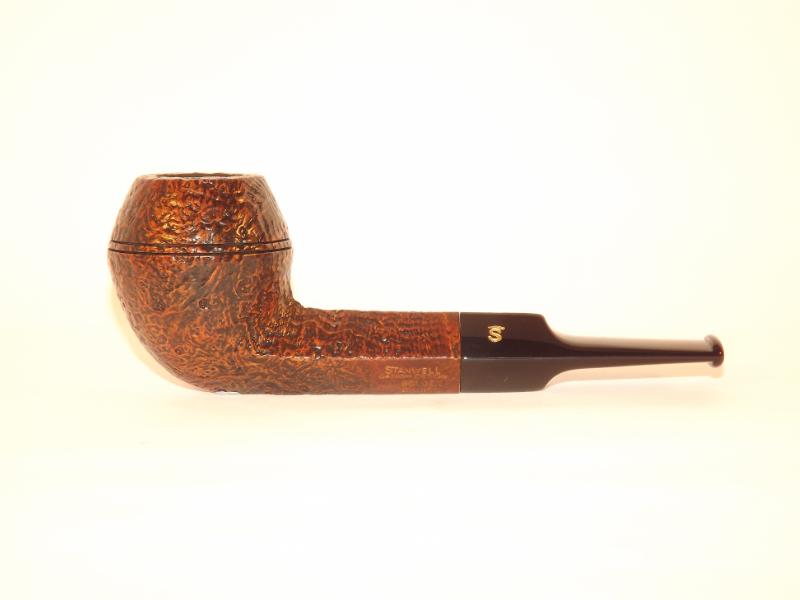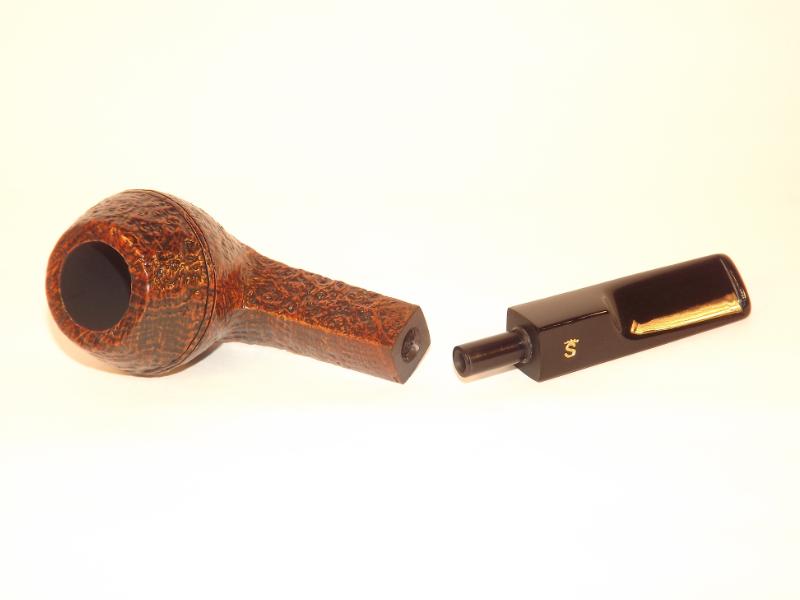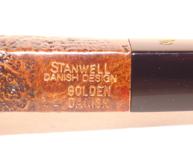 Stanwell Golden Danish pipa bruyerből készült, barna színű homokfúvott pipafej, filter nélkül, gyémánt alakú, egyenes szárral, fekete, nyerges akril szopókáva.