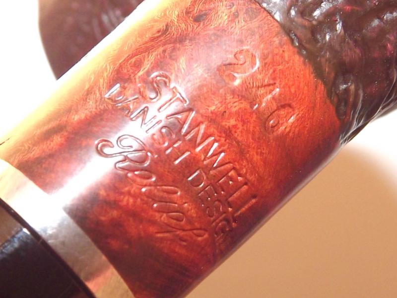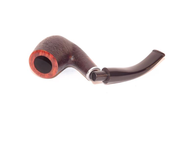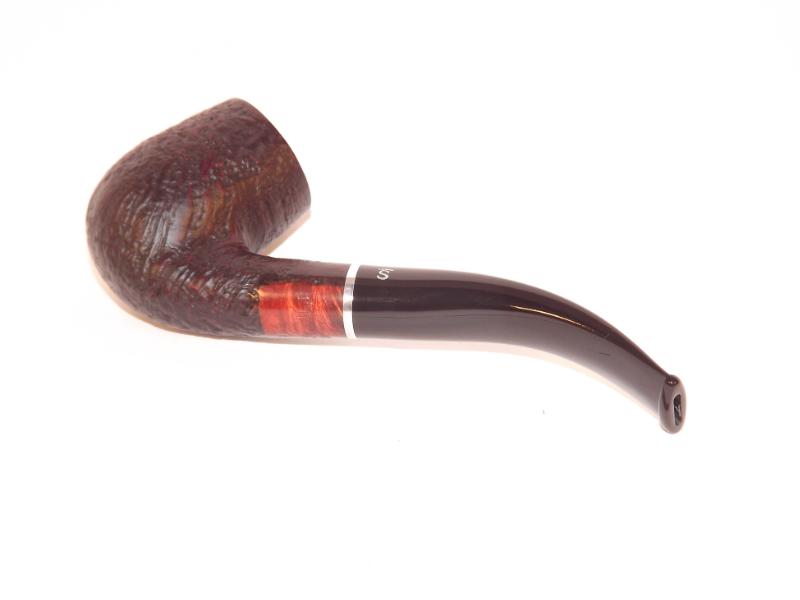 A Stanwell Relief 246 Black Sand pipa bruyerből készült homokfúvott fekete pipafej, 9mm-es filterrel, hajlított szárral, fekete akril szopókával. A szárat egy fémgyűrű díszíti