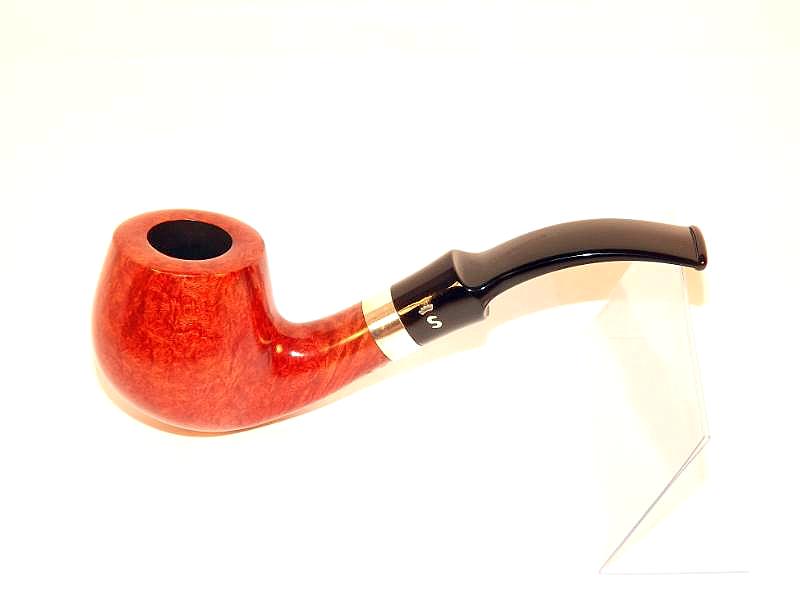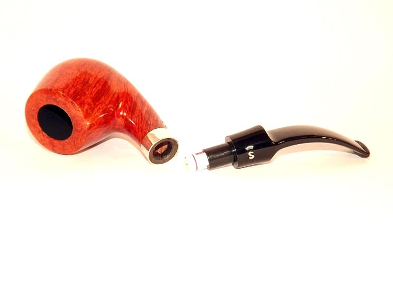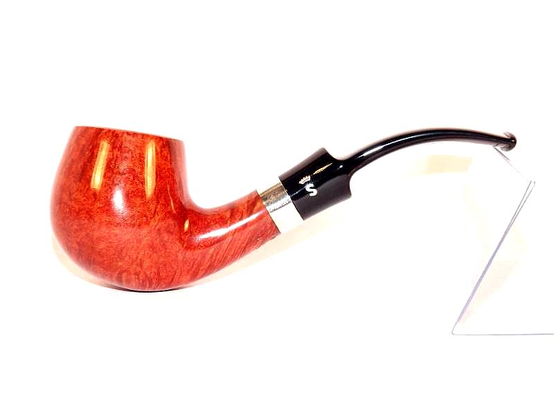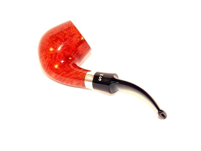 Stanwell Sterling 84 pipa bruyerből készült barna polírozott pipafejjel, 9mm-es filterrel, fekete, nyerges akril szopókával és szögletes, hajlított szárral.
