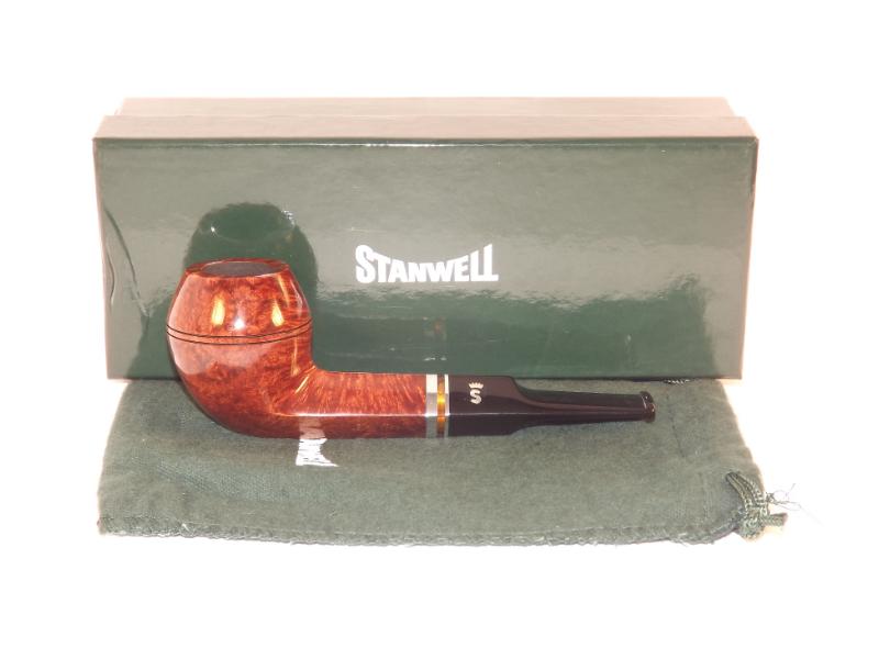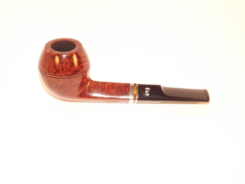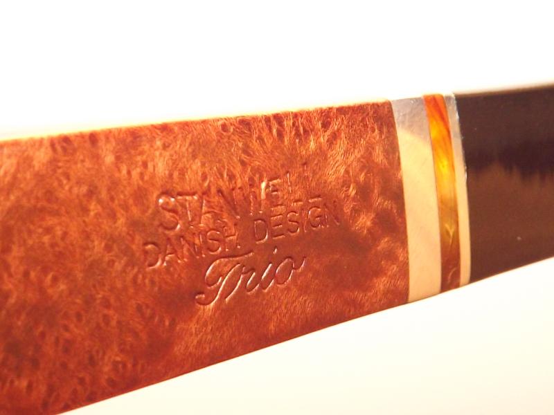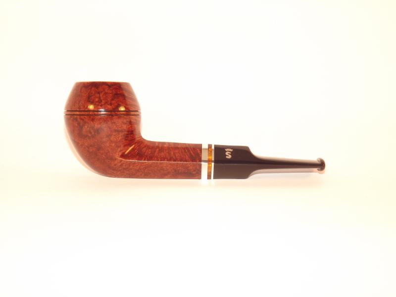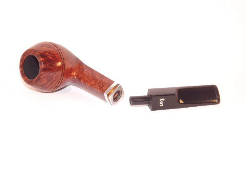 A Stanwell Trio 32 Brown Polish pipa bruyerből készült polírozott barna színű pipafej,filter nélküli, egyenes szárral, fekete, nyerges akril szopókával. A szárat két ezüst színű gyűrű között egy borostyán színű akril-gyűrű díszíti.